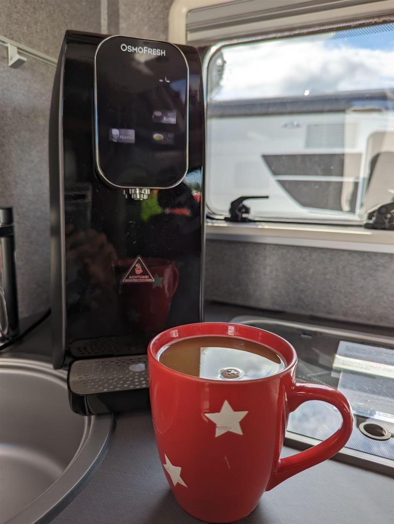 Für mich optimal: in einem "geschützten" Bereich mit ganz viel Kompetenz um mich herum immer mehr Dinge in meinem Wohnmobil auszuprobieren...Gasherd an (jaja, ihr Gas-/Grill-Erfahrenen, für euch ein Kinderspiel😂...für mich eher Vorurteils-/Trauma-Bewältigung🙈)...erster eigener Kaffee in Emma aus der Umkehr-Osmoseanlage...Solarpanels für Powerstation ausprobieren.